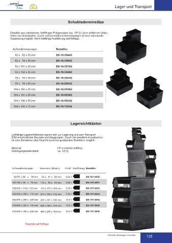 Außenabmessungen Innenabm. (Boden) Inhalt Ausführung Bestellnr.
