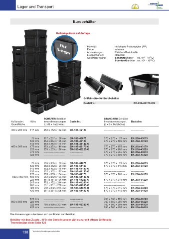 Behälter mit dem Zusatz „-O”in der Bestellnummer gibt es nur mit offener Griffmulde.