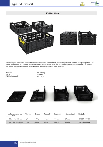 Außenabmessungen Volumen Gewicht Tragkraft Stapellast Höhe geklappt Bestellnr.