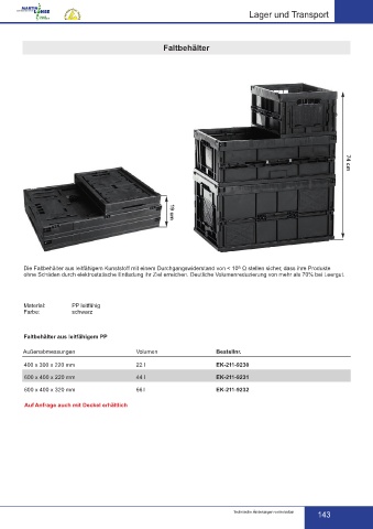 Die Faltbehälter aus leitfähigem Kunststoff mit einem Durchgangswiderstand von < 10 Ω stellen sicher, dass ihre Produkte 74 cm