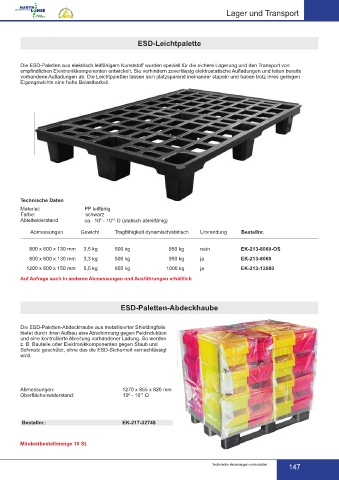 vorhandene Aufladungen ab. Die Leichtpaletten lassen sich platzsparend ineinander stapeln und haben trotz ihres geringen