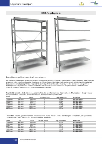 Einhängen von Trägertaschen und Kreuzverbänden. Variable Fachgrößen werden mit frei platzierbaren Fachböden oder