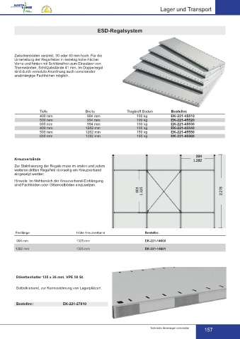 Trennwänden, Schlitzabstände 41 mm. Im Doppelregal