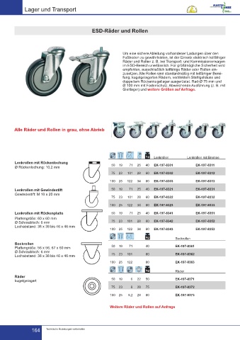 ger Räder und Rollen z. B. bei Transport- und Kommisionierwa-
