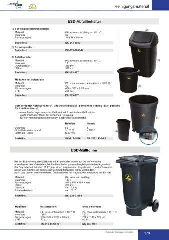 ESD-gerechter Abfallbehälter (4) und Abfalleinsatz (5) permanent leitfähig (auch passend