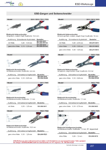 Bei Zangen mit ERGONOMIC-Griff wird die Bestellnr. mit “E” ergänzt; z. B.: EK-208-5123E 215
