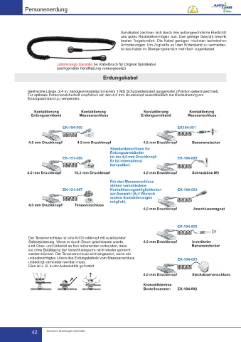 Gestreckte Länge: 2,4 m, handgelenksseitig mit einem 1 MΩ Schutzwiderstand ausgerüstet (Position gekennzeichnet).